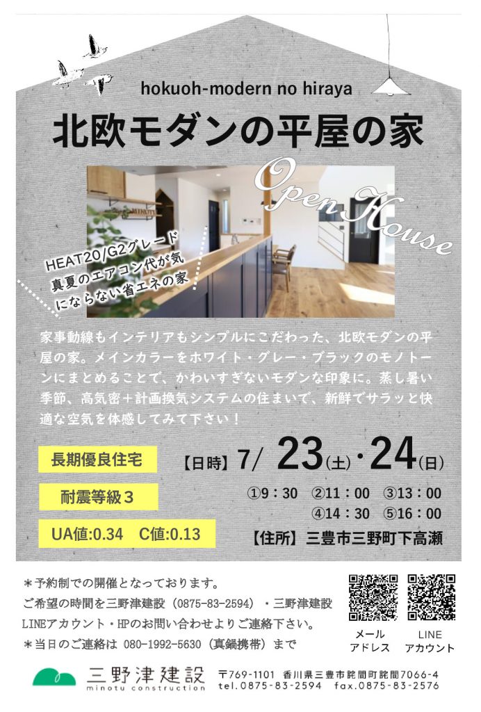 7/23(土)・24(日) 北欧モダンの平屋の家 予約制完成見学会を開催します!