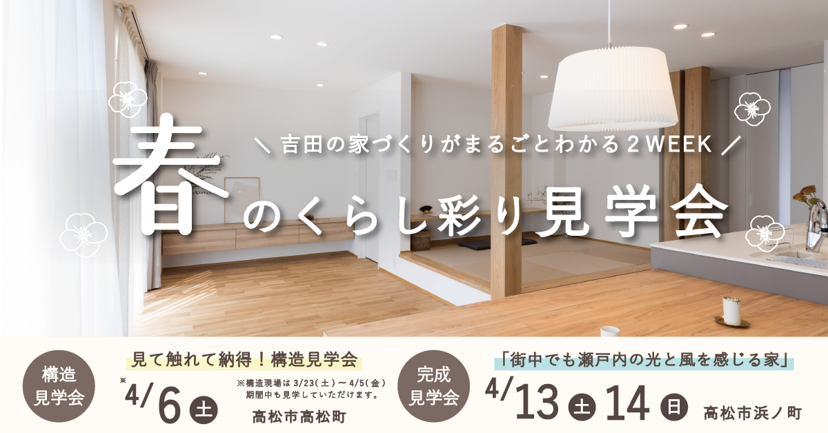 4/6(土)・13(土)・14(日)吉田建設の家づくりがまるごとわかる2WEEK「春のくらし彩り見学会」